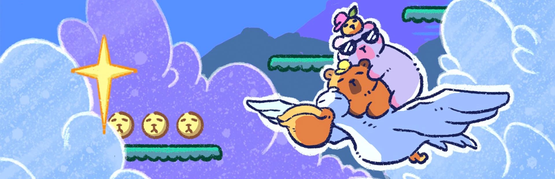 A retro 2D platformer with fun gameplay, cute characters, and 8-bit visuals! Play as a capybara, cross forests and seas, stomp enemies, toss crates, and save animal friends. Go solo or co-op, find hidden levels, and stop an evil villain!
