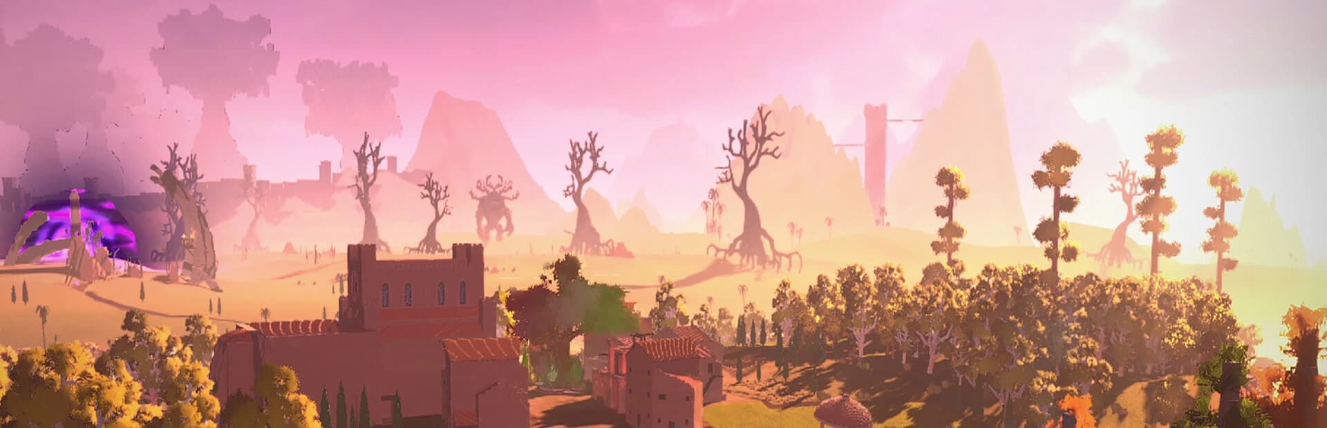 Charming voxel-style art — a handcrafted blocky world with a warm, inviting visual identity